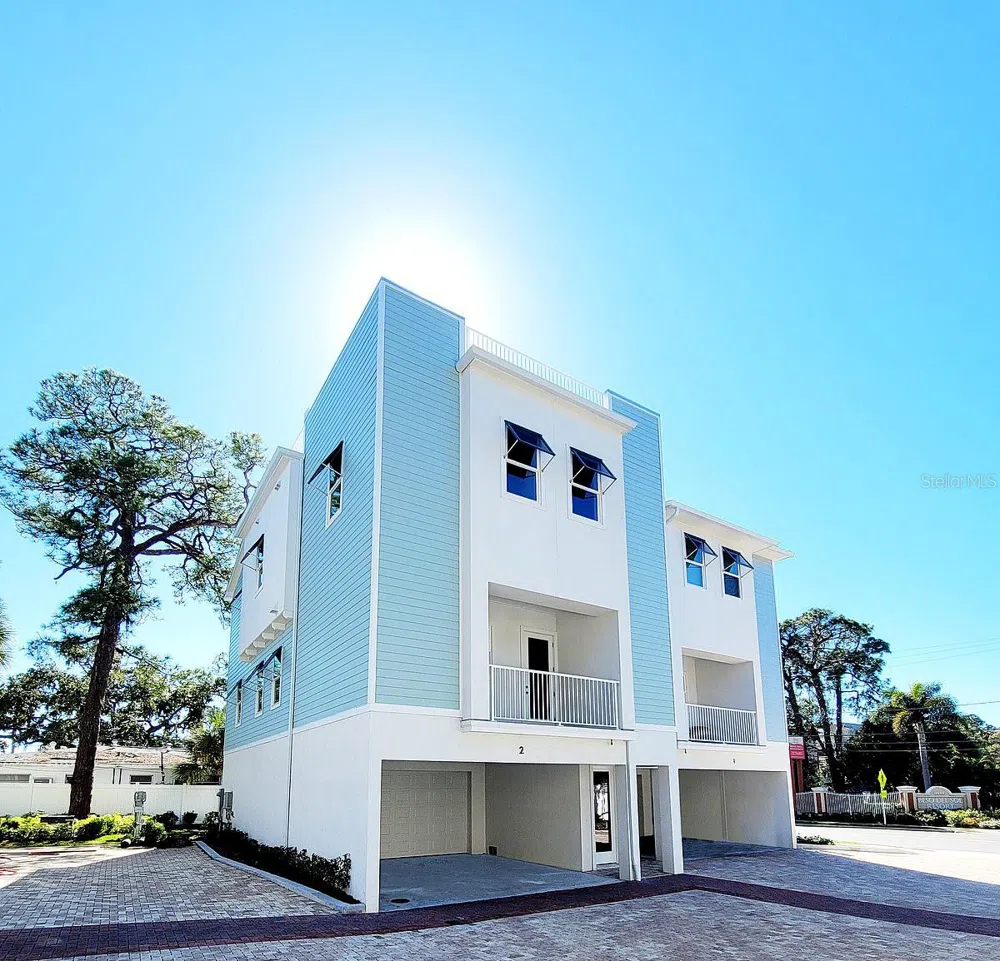 Pre-Construction. To be built. Pre-Construction. To be built. New luxury high performance 2022 ICF built townhome that combines beauty and function with safety and security. The home has 2759 square feet of living space and a 4-stop elevator to all floors including a rooftop patio with waterviews! The modern living space on the main (2nd) floor is bright and open offering a large great room, spacious dining area, an office, two balconies, a half bath and a gourmet kitchen. The kitchen boasts upgraded stainless appliances, gas range in the center island, walk in pantry, real wood shaker-style cabinets and loads of premium granite countertop space. The home has designer engineered wood flooring throughout and tiled bathrooms. The sleeping quarters along with the laundry area are on the 3rd floor. The giant owner’s suite has walk in closet and an en-suite bathroom that does not disappoint with a large walk-in shower, beautiful garden tub, dual sinks, water closet and more. There are also two guest rooms and a full bath. Stairs lead to the roof top patio where you can sunbath privately, entertain guests or watch the sunset over Caladesi Island and the intercoastal waters. Upgraded features included are Miami-Dade Impact windows and doors, 6-inch trimmed window casing, 10ft ceilings, smooth finished walls and ceilings, 8ft solid core interior doors, LED Lighting, residential 4 stop elevator, Hardy siding, super gutters, ceiling fans and more. Take the elevator down to the oversized 4 car garage with room for kayaks, golf carts, bikes and more. Insulated Concrete Forms (ICF) built homes is the most superior residential construction methodology for the R-rating, wind rating as well as sound, termite and mold resistance! Search up ICF construction to learn more. Mira Vista is a boutique community of new ICF construction townhomes perfectly and directly located on the Pinellas Trail between desirable downtown Dunedin FL and the Gulf of Mexico's award-winning beaches. Mira Vista’s private paved street, Florida Smart Water standards, landscape architecture ties the nautically inspired townhomes into the cohesive design of the whole community and city of Dunedin! Thoughtful architecture, solid construction, superior features included along with beautiful community design is what separates Mira Vista from any other new home development in the County, period! Walk to Marker 8's waterfront tiki bar, marina, restaurant and giant patio with public pool! Walk the Pinellas Trail to downtown or bike it to the beaches or Ozona FL. Hop on the open Jolley Trolley to famous Clearwater Beach or Tarpon Springs sponge docks. You deserve the luxurious living at Mira Vista. Come see the gorgeous finishes, superior construction, spacious floor plan and breath-taking views!