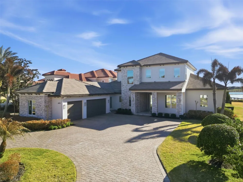 Luxury meets laid-back lake living on Lake Hancock in Winter Garden, inside the sought-after Independence community with parks, trails, and a true neighborhood feel. Custom built by Brierhill Homes, recognized as MCBC Builder of the Year, and professionally designed/furnished by Gilmore Design Co., this exceptional direct lakefront residence sits on one of the area’s largest lots—with an oversized, fully fenced backyard and wide-open water and sunset views from most interior living areas and bedrooms. Arrive via an impressive circular drive and step into a striking entry featuring a custom front door, polished natural stone flooring, and a dramatic stone accent wall—framed by a deep, covered front porch with a rich wood-plank ceiling that immediately sets the tone. It’s a welcoming space that’s perfect for a small seating area to enjoy morning coffee or greet guests in style. Inside, the home is bright, elevated, and designed for both entertaining and everyday comfort, highlighted by a timeless coastal-modern palette, a beautiful white oak staircase with integrated LED lighting under each step, and custom ceiling details throughout (including soffit/tray accents and integrated lighting). The layout offers 5 bedrooms—each with a private en-suite bathroom, walk-in closet, and blackout honeycomb shades for comfort and privacy—including a stunning first-floor primary suite with serene lake and backyard views, plus a dedicated first-floor guest suite. You’ll also love the private office and a media room that easily works as a flex space (playroom, gym, second lounge, or homework room). At the heart of the home, the chef’s kitchen showcases Thermador appliances and a show-stopping double island topped with Cambria quartz with subtle gold veining, plus a custom chevron-designed backsplash highlighted by under-cabinet LED lighting. The kitchen flows seamlessly into the main living space for true indoor-outdoor living. A wall of living room sliding glass doors opens wide, creating one expansive space that connects the interior to the lanai, pool, and lake beyond. The living area is anchored by a sleek gas fireplace with a natural stone surround and custom built-ins. Enjoy built-in Sonos sound in the living room and kitchen, with audio extended to the outdoor kitchen as well—plus the flex/media space is pre-wired if additional speakers are desired. Out back, unwind in your private retreat with a heated pool and spa, generous covered areas, and a summer kitchen made for sunset dinners. The first-floor lanai (including the summer kitchen) and the second-floor balcony are both fully encapsulated with motorized screens controlled by remote—perfect for effortless, bug-free evenings—while the outdoor ceilings feature a warm wood-plank accent that brings a high-end, resort feel throughout the outdoor living spaces. Additional highlights include a whole-home water softener/filtration system (low/zero maintenance), a built-in security system with exterior cameras, built-in Sonos audio, and whole-home smart lighting with keypad controls and scene presets—plus an oversized 3-car garage. A portion of the lot extends into the lake. Select furniture may be purchased separately upon request.