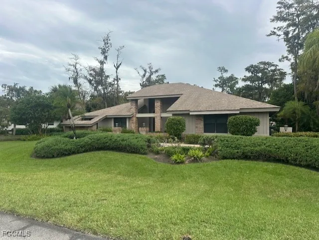 Experience refined living in this beautifully appointed 3-bedroom, 3-bath plus den residence with a 2-car garage, ideally located in the prestigious Fiddlesticks Country Club. This stunning home offers timeless design, elegant finishes, and breathtaking golf course views of the #18 tee of the Long Mean with desirable western exposure for unforgettable sunsets. The interior features a welcoming living room and a spacious family room, both designed for comfort and entertaining. A cozy fireplace and custom details throughout create a warm and inviting atmosphere. The kitchen comes complete with stainless steel appliances, ample cabinetry, and seamless flow to the main living areas. The den provides the perfect space for a home office, library, or guest retreat. Step outside to an expansive screened lanai featuring a sparkling pool, built-in grill, and multiple lounging areas—perfect for outdoor dining and entertaining while overlooking the pristine fairways. Located in one of Southwest Florida’s most exclusive private golf communities, this exceptional home offers the perfect blend of elegance, comfort, and resort-style living. MANDATORY EQUITY MEMBERSHIP FEE OF $115,000 DUE AT CLOSING. ADDITIONAL MONTHLY FEES APPLY.