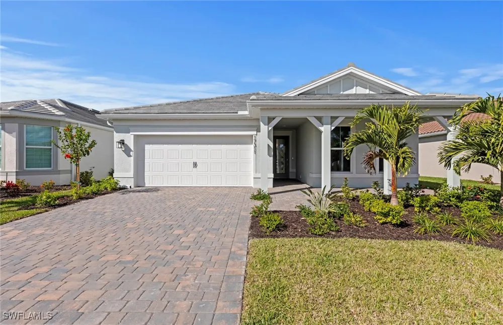 Move to Del Webb Oak Creek! This brand new Palmary home is move-in ready! This Palmary home features 2 bedrooms, 2 baths, den, and 2 car garage with 4' extension. Built-in stainless steel appliances, white wood cabinets, custom backsplash, quartz countertops, 8' doors throughout, tray ceiling at gathering room, enlarged walk-in shower in owners suite, walk-in shower at secondary bath, 22x22 tile flooring throughout, full laundry upgrade, smart home package, impact glass, screened-in covered lanai with landscape view & more! Oak Creek is Del Webb’s newest 55+ community, situated in North Fort Myers. Homeowners will benefit from it being a natural gas, gated community with vacation-inspired amenities such as a resort style pool and spa, clubs and activities, a restaurant and covered Tiki, and a fulltime lifestyle director. Just beyond the gates homeowners can find shopping and dining, explore Fort Myers River District, relax on the Gulf Coast beaches, and experience new recreational activities while still being only minutes from everyday conveniences.