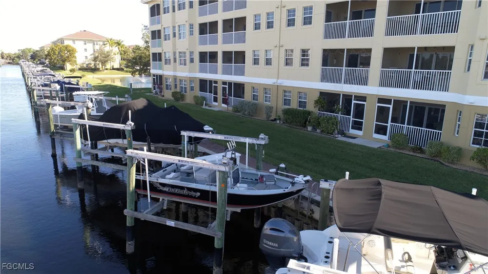 1st floor piece of paradise with a boat lift. Don't let this beautiful updated condo pass you buy. 2 bedrooms and 2 bathrooms which were both tastefully updated with laundry. Did we mention your own boat lift? LVT flooring throughout the home. Worried about putting up shutters for a storm? Not here. Impact glass slider and windows. Sellers also installed plantation shutters on windows making for a more luxurious feeling. Updated kitchen with quartz countertops only used for a couple weeks before sellers left for the winter last year. On top of all of that there is a clubhouse on property with a big pool, spa, and pickelball courts. Schedule your appointment today before this beautiful condo slips away.