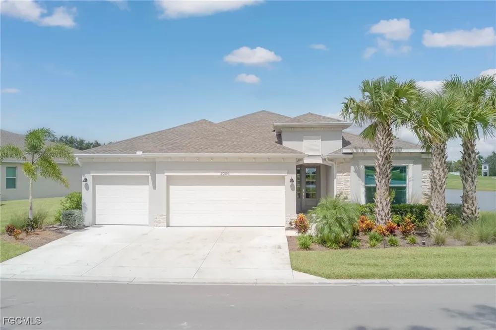 Why wait to build and then have to furnish, when you can move right into this like new, lavishly decorated, TURNKEY FURNISHED home? FABULOUS WATERFRONT LOCATION WITH UNPARALLELED GOLF COURSE VIEWS OF 18TH HOLE! 360 STUNNING VIEWS FROM EVERY WINDOW AND LIVING ROOM WALL OF SLIDERS! This TURNKEY FURNISHED home features 4 bedrooms, 2 full baths and a three car garage, Upgrades include gourmet kitchen with extra large counter height island with Quartz countertops, coveted white cabinets, subway tile backsplash, stainless appliances, large tile laid on the diagonal throughout. HURRICANE IMPACT GLASS AND SLIDERS FOR ADDED PEACE OF MIND.Amenities include Championship golf course designed by Gordon Lewis III, the course is known for its challenging design with the highest elevated green in Fort Myers and panoramic views of the surrounding area. Resort style pool, meticulously maintained Tennis and Pickleball courts are sure to impress. All of this and UNLIMITED GOLF MEMBERSHIP FOR TWO, included in your dues.