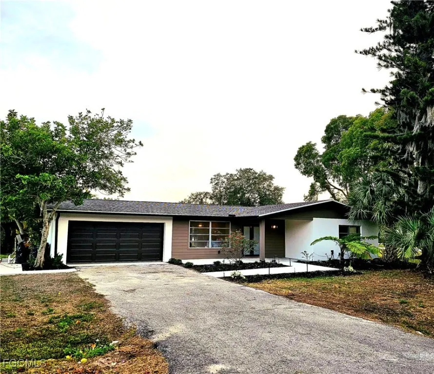 Gorgeous, fully remodeled top-to-bottom transformation in this stunning 4-bedroom, 2-bath home spanning just under 1,600 square feet on a sprawling corner lot in Fort Myers Shores. Reimagined for absolute peace of mind, this property underwent a full professional remediation where all drywall was replaced and wood studs were meticulously treated or replaced. The grand double front entry leads into a showcase of luxury modern elegance, featuring seamless porcelain tile floors accented by 5-inch premium wood baseboards throughout. A gourmet kitchen serves as the heart of the home, outfitted with solid wood cabinetry, quartz countertops, and a brand-new suite of LG appliances. Both bathrooms offer a spa-like retreat with European floating vanities, quartz counters, and showers with double shower heads. Structural and mechanical upgrades provide total fortification, including a newer roof (2023), new soffits, and gutters. New AC with all-new ductwork for superior air quality. New Water Heater, New hurricane-impact front entry and garage doors. Automatic garage openers. Epoxy Garage Floors. Outside, the property is a botanical oasis with exotic landscaping illuminated by custom low-voltage lighting. Irrigation for all your plant needs. Best of all, enjoy the boating lifestyle without the waterfront price tag, as a Gulf-access boat ramp is located right at the end of the road. With no HOA, premium finishes, and "better-than-new" infrastructure, this is the premier turn-key offering in the Shores.