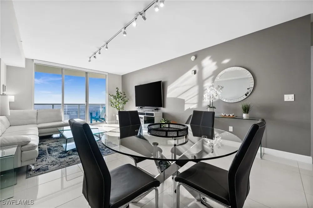 Welcome to this breathtaking 29th floor luxury waterfront condo at contemporary OASIS skyrise, offering penthouse like views and unparalleled luxury. Overlooking historic downtown Fort Myers and the serene Caloosahatchee River, this furnished contemporary residence delivers the most stunning sunsets over the sprakling river, dazzling city lights, and exceptional privacy. Boasting two bedrooms plus a den, two full beautifully appointed bathrooms, and over 1500 square feet of living space, this spacious layout offers approximately 200 square feet more than similar units, making it one of the largest and most desirable floor plans available. Furnished with exclusions, the home features elegant white tile flooring that flows seamlessly from the interior living areas onto the expansive balcony, creating a harmonious indoor outdoor living experience. An electric fireplace adds warmth and ambiance, while automatic blinds in the living room and primary bedroom provide modern convenience and sophistication. The stylish kitchen is equipped with stainless steel appliances, granite countertops, a new wine cooler cabinet, and a brand new dishwasher, perfect for entertaining while enjoying breathtaking sunset views. Recent upgrades include a new AC unit and a new water heater, offering peace of mind and energy efficiency. The primary suite features balcony access, an en suite bathroom with dual sinks, a glass enclosed shower, and a separate jetted tub for luxurious relaxation. The guest bedroom and den provide privacy for visitors, with the den featuring a six foot built in storage unit ideal for bikes or additional storage. Western exposure enhances the panoramic views and natural light throughout the unit. ***** This residence includes 2 assigned very hard to come by parking spaces (#1067 and #2003) ***** and a large L shaped storage unit (!) on the 6th floor, providing exceptional convenience. OASIS is renowned for its resort style amenities including a stunning pool deck with spa, state of the art fitness center, billiard and hobby room, resident lounge, and social events that enhance the vibrant community atmosphere. Ideally located in the heart of downtown Fort Myers, you are just steps from the River District’s shops, dining, and entertainment. Do not miss this opportunity to own a truly exceptional luxury condo with spectacular views, modern upgrades, and an unbeatable location.