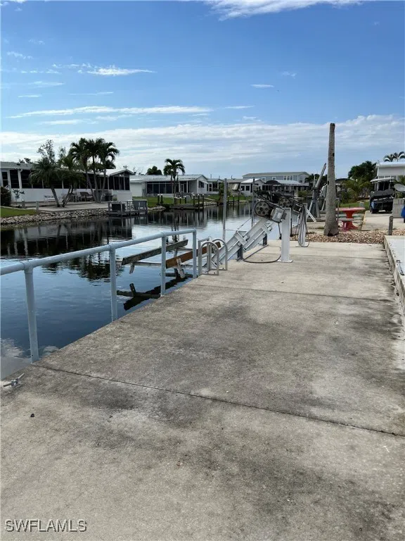 Gulf Access Canal lot by using the boatlift at end of canal. Or can you use the Pine Island Cove boat ramp. Lot has a boat lift which needs work. Savings of impact fees to build your new home. Concrete driveway. Community is a 55+ with heated pool, spa, picnic area, dog park, RV, boat storage and lots of activities for everyone.